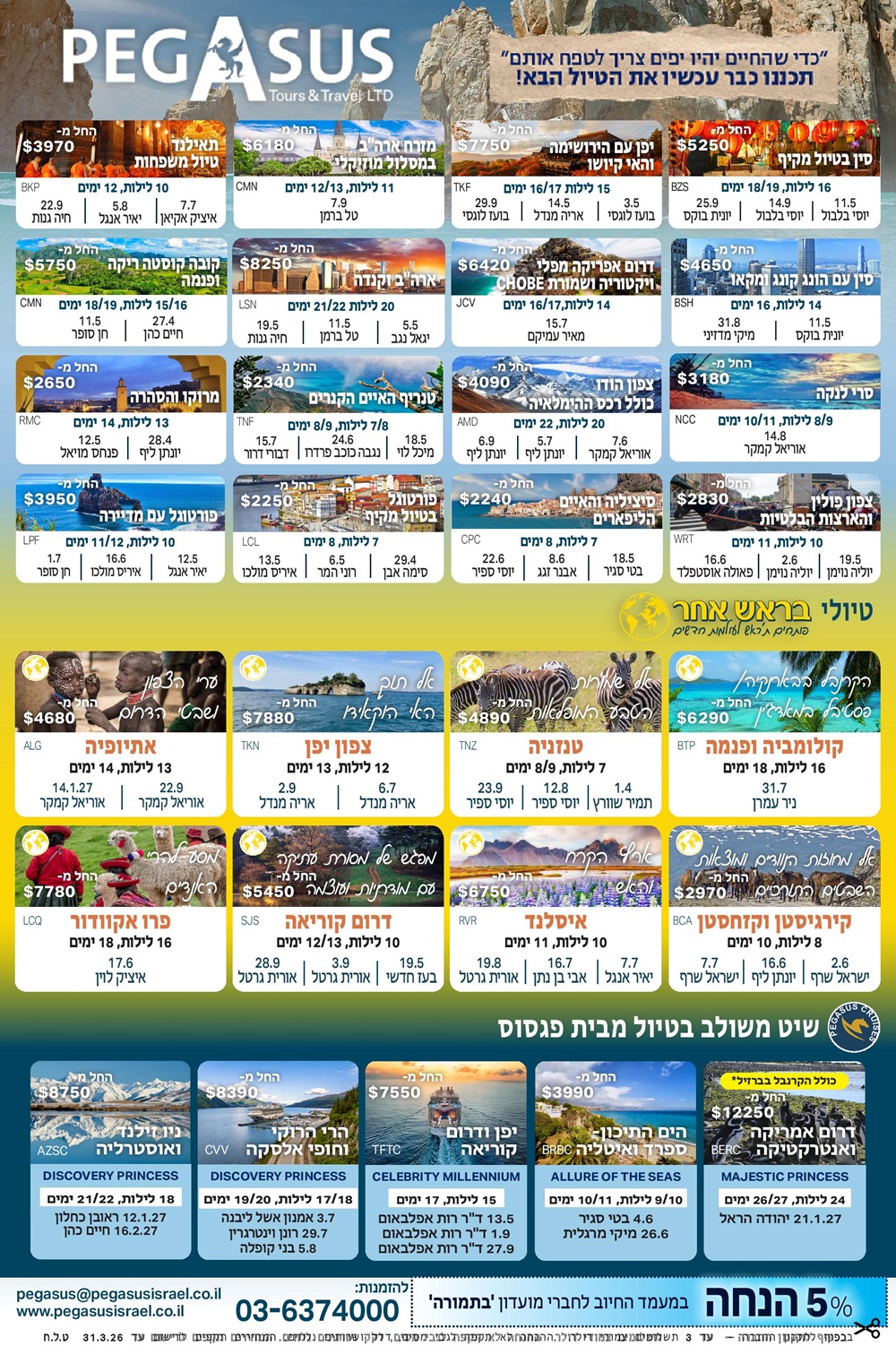 טיולים מאורגנים פגסוס - אביב - קיץ 2026