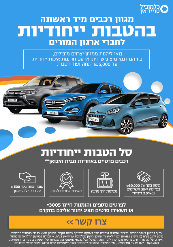 מגוון רכבים מיד ראשונה : הטבות ייחודית לחברי ארגון המורים